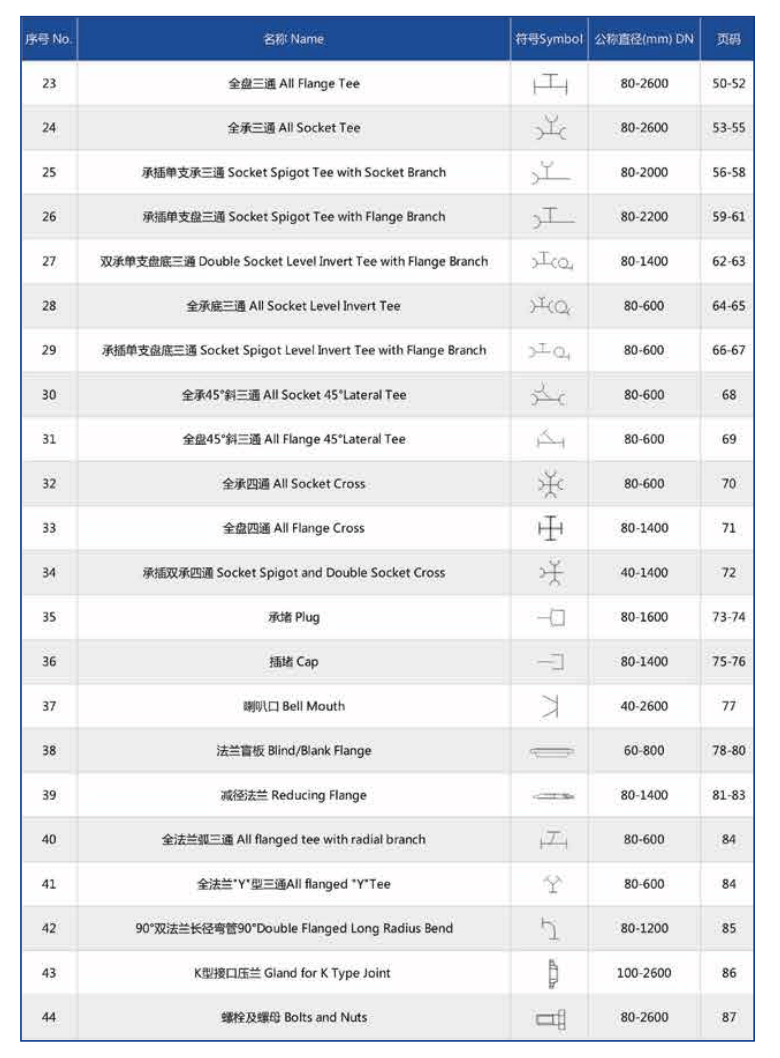 各種規(guī)格管件尺寸及重量: