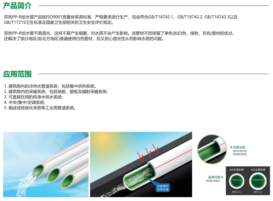 1.衛(wèi)生的綠色建材,PP-R原料屬聚烯豎類,其分子僅由碳、氫元素組成,衛(wèi)生性能可靠。