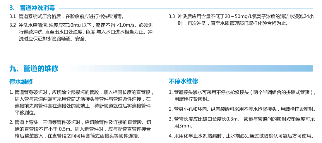 宜昌HDPE雙壁波紋管作為現(xiàn)代城市建設(shè)和基礎(chǔ)設(shè)施中的重要材料,因其優(yōu)良的耐腐蝕性、高強度、輕量化及良好的柔韌性,被廣泛應(yīng)用于排水、排污、農(nóng)田灌溉及通信工程等領(lǐng)域。然而,為了確保其長期正常運行,定期的維護與保養(yǎng)顯得尤為重要。 首先,定期檢查是保養(yǎng)工作的基礎(chǔ)。應(yīng)定期檢查管道表面是否有損壞、磨損或裂紋,特別是在管道連接處。同時,需檢查管道周圍是否有滲漏的水,一旦發(fā)現(xiàn)滲漏,應(yīng)及時修復(fù),防止問題擴大。此外...